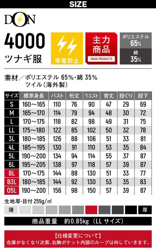 ヤマタカ ツナギ服 4000 長袖 B体あり メカニック向け バイカラー 帯電防止 膝ストレッチ 立体ヒップ 主力 つなぎ 作業服 作業着 メンズ レディス DON YAMATAKA