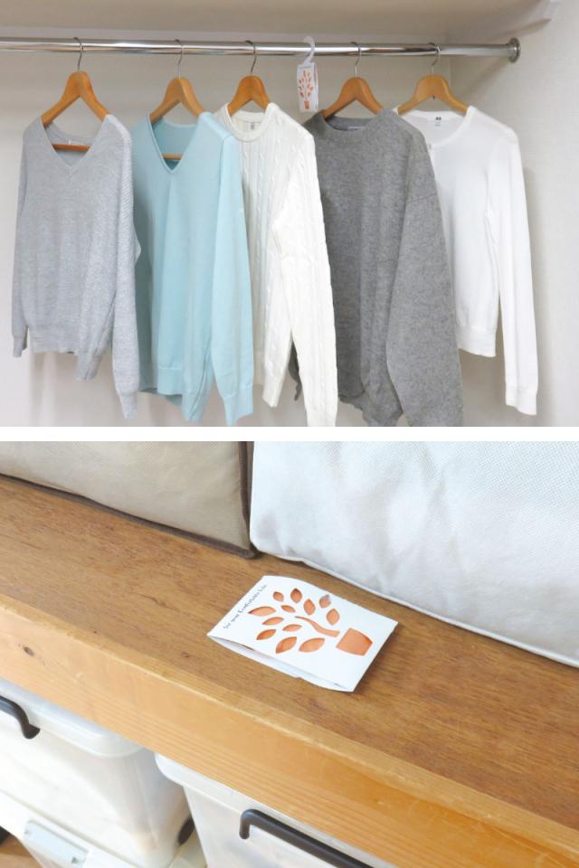 ●効果範囲のめやすは、クローゼット(幅180×60×230cm)の吊った衣類に対して1個、押入れ(幅約180cm)の上段・下段に各1個です。