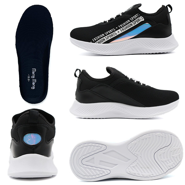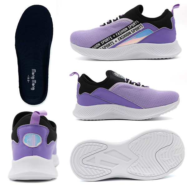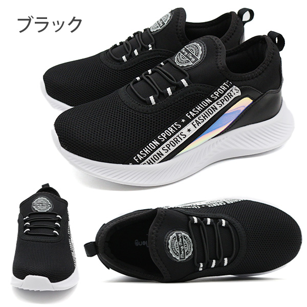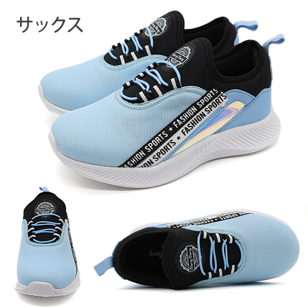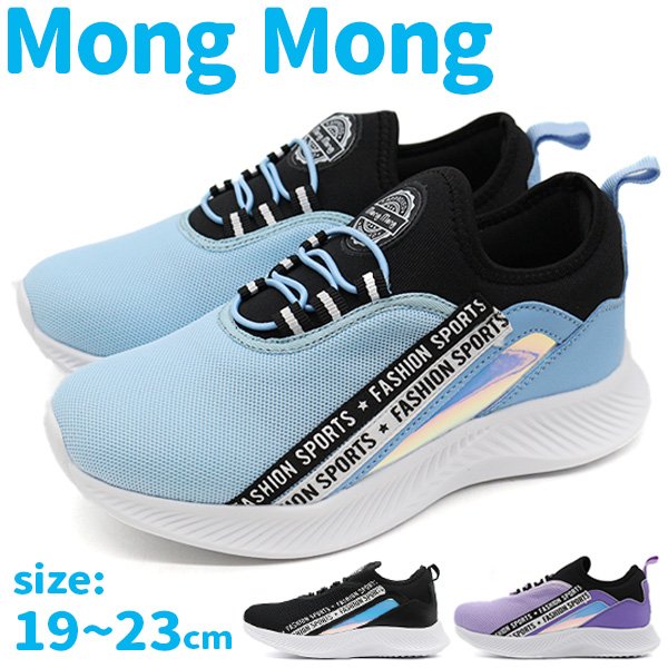 スニーカー キッズ ジュニア 子供 靴 スリッポン 黒 ブラック 水色 サックス 紫色 パープル 通学 かっこいい かわいい 女の子 ストリート ロゴテープ キラキラ オーロラ ゴム紐 軽い 軽量 モンモン Mong Mong381