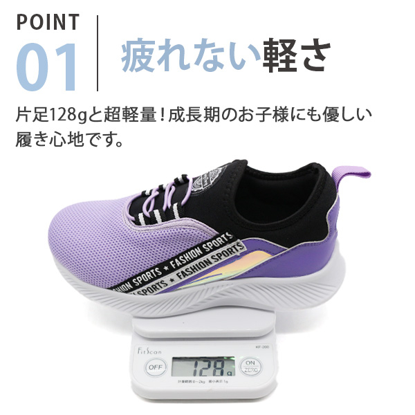 片足128gと超軽量!成長期のお子様にも優しい履き心地です。