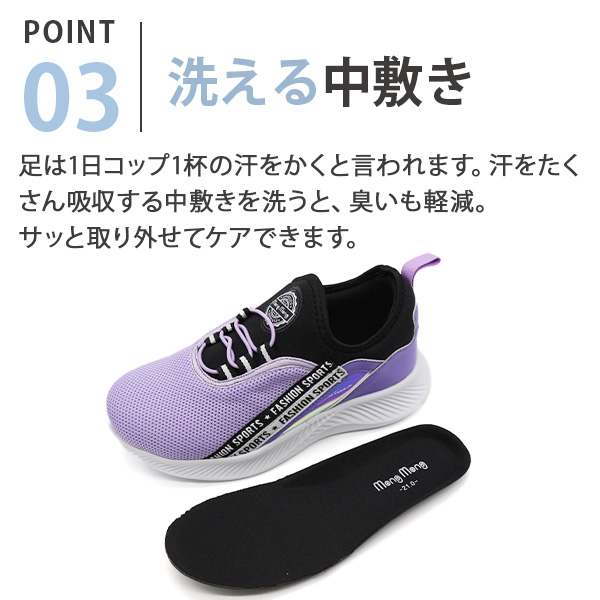 足は1日コップ1杯の汗をかくと言われます。汗をたくさん吸収する中敷きを洗うと、臭いも軽減。サッと取り外せてケアできます。