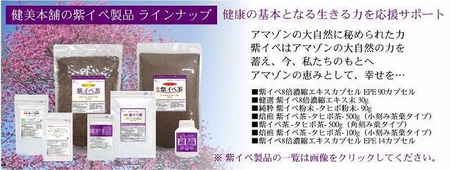 紫イペ茶はタヒボ茶 パウダルコ タブベイアなどとも呼ばれ、健康茶として親しまれており、健美本舗としましても、お奨めのお茶です。品質、質量、お値段ともに自慢の製品です。【ご使用方法】 800mlのお湯に5〜10g度の紫イペ茶葉を入れ、弱火で15分程度煮出してください。または、 ハーブポット等にお湯を注ぎ適量の茶葉を入れ、しばらくしてお飲み下さい。