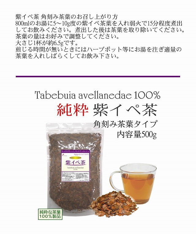 元気に生き抜く力 純粋 紫イペ茶 -タヒボ茶- 大容量 500g(角刻み茶葉タイプ)ブラジル原産 タベブイア・アベラネダエ種使用 メール便送料無料