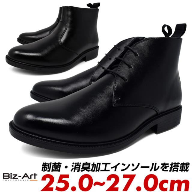Biz Art ビズアート ビジネスシューズ メンズ チャッカブーツ ショートブーツ サイドファスナー付き 紐あり 紐なし 靴 黒 ブラック 仕事着 仕事靴 スーツ 抗菌 制菌 消臭 軽量 ポイント消化
