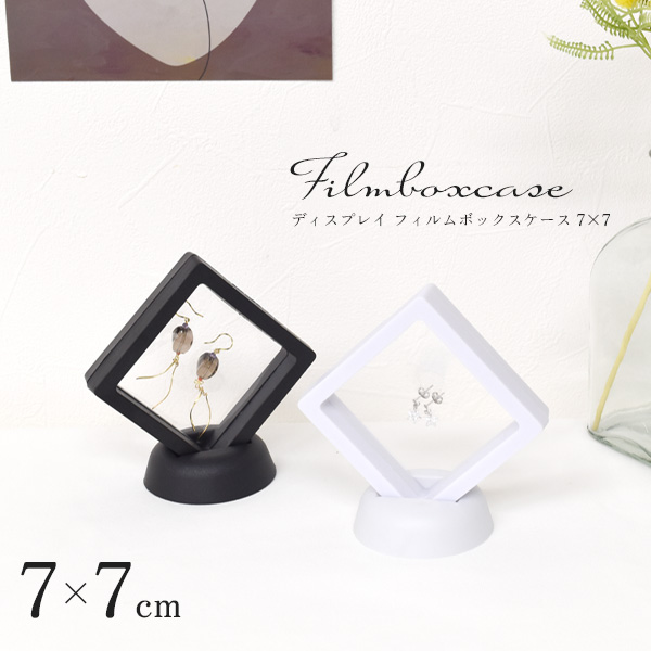 アクセサリーケースにも最適!スタンド付き ディスプレイ フィルムボックスケース 7×7cm ホワイト/ブラック