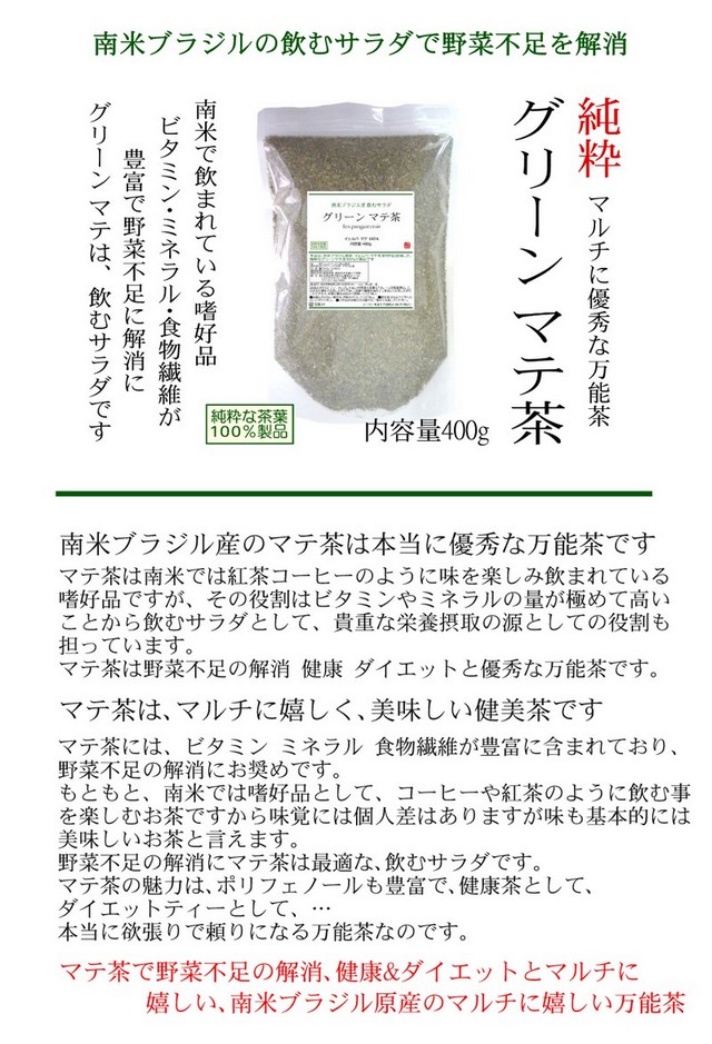 野菜不足の解消に飲むサラダ マテ茶 400g 茶葉グレード品位とご提供価格に自信ありの グリーンマテ茶 健康ダイエットにお奨めの健康茶 メール便限定送料無料