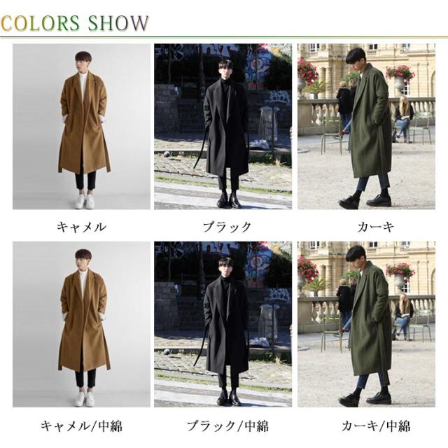 チェスターコート メンズ ロングコート 中綿 コート 裏キルティング ロング丈 厚手 ベルト付き アウター ドルマン袖 秋冬 お洒落 大きいサイズ ゆる