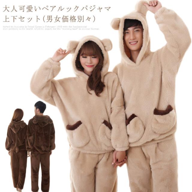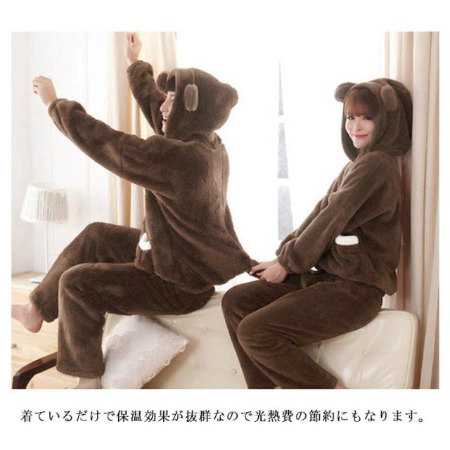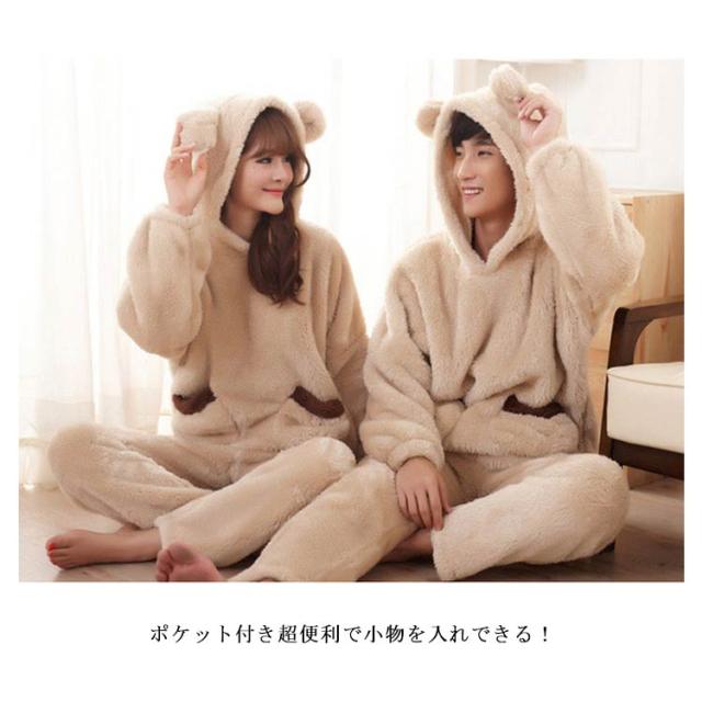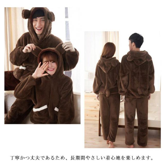 ペアパジャマ パジャマ上下セット ルームウエア パジャマ 上下セット レディース メンズ ペア 部屋着 ふわふわ 着る毛布 もこもこ くま耳 耳付き 秋冬 暖かい 女性用 男性用