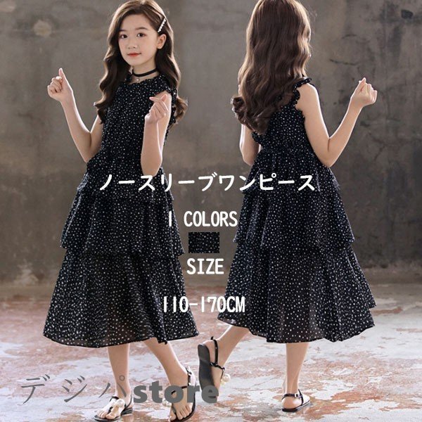 ワンピース キッズ 女の子 夏 ノースリーブ 子供ワンピース キッズワンピース 黒ワンピース ロング丈 ゆったり ジュニア 子供服 110 120 130 140 150 160cm