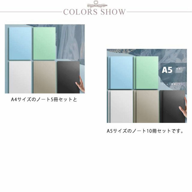 | サイズについての説明 | A4サイズ:285*210mm(5冊入り) A5サイズ:210*142mm(10冊入り) |