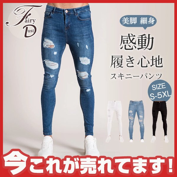 スキニーパンツ メンズ ストレッチ スキニー ダメージ加工 スキニーデニムパンツ ジーンズ デニムパンツ スリム 美脚 感動の履き心地 細身 春服 春物