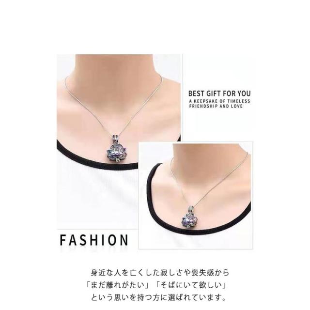 | 最愛なる方、愛犬愛猫などの遺骨や遺品を納める事が出来るネックレスです。 辛い時 悲しい時 懐かしい思い出に浸る時、 ふと気づくと手にとってしまう まるで自分を側で守っていてくれてるように感じられます。 大切なペットの遺骨、遺毛、爪 大切な故人様の遺骨、遺髪 御守りの代わりとして身につけることができます。 ペンダントのトップに遺骨や遺灰、遺髪等を 少量納めて身につけられるジュエリーです。 ペンダントの本体に空洞があり、ネジで開閉 することで納められます。 近年増えつつある「手元供養」の一つです。 年齢・性別を問わず、 身近な人を亡くした寂しさや喪失感から 「まだ離れがたい」「そばにいて欲しい」 という思いを持つ方に選ばれています。 故人を胸元に感じることで、前向きになる ためのジュエリーです。 | |