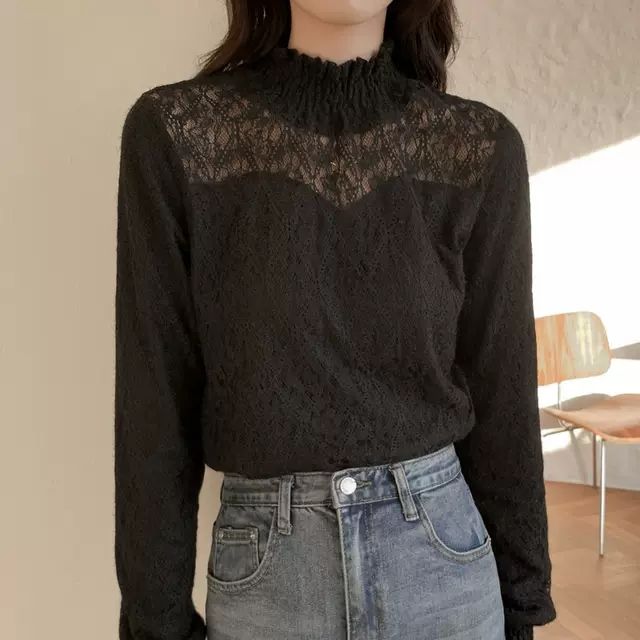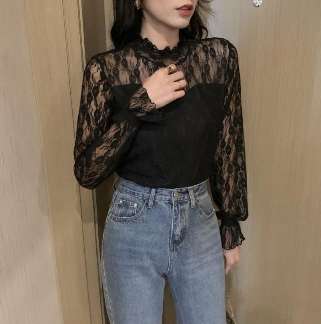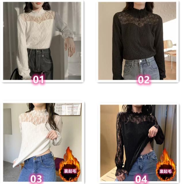 インナー レディース 秋冬 トップス 長袖 レーストップス ブラウス レースブラウス レース トップス ハイネック 総レース 花柄 オフィス カジュアル フォーマル 黒 ハイネック きれいめ 結婚式 二次会 パーティー 華やか ブラック ホワイト 秋 冬 送料無料