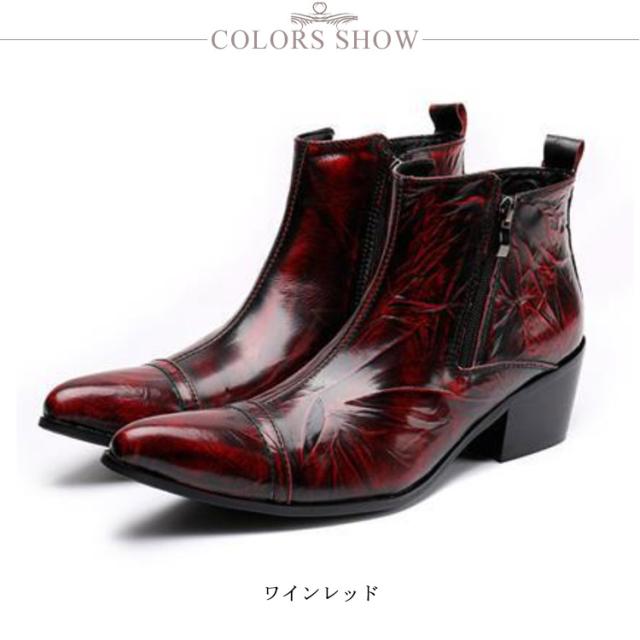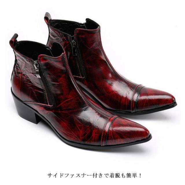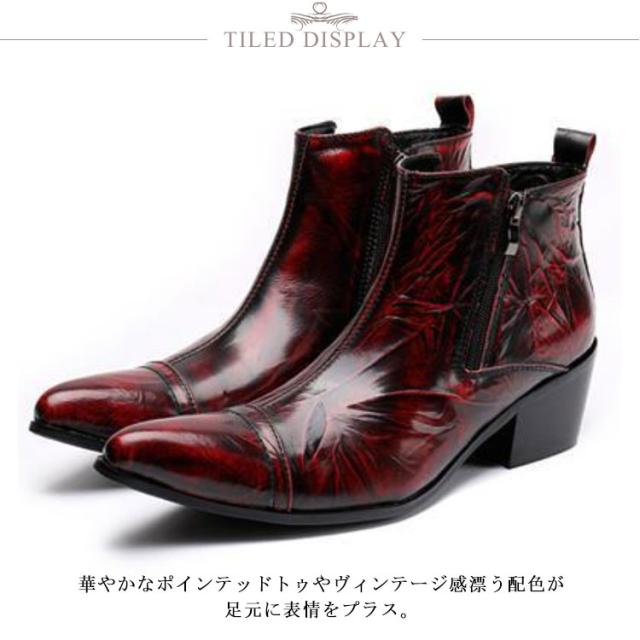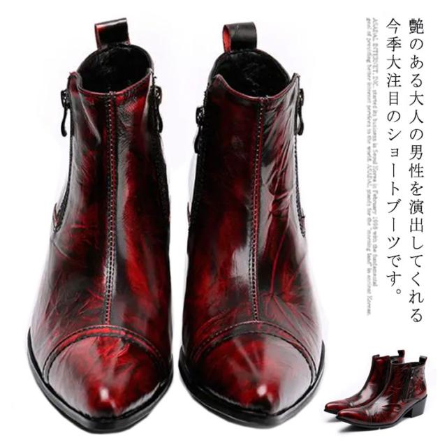 ウエスタンブーツ メンズ 本革 ショートブーツ 牛革 革靴 サイドファスナー ドレスシューズ ビジネスシューズ 紳士靴 ポインテッドトゥ おしゃれ オペラシューズ ホスト 派手 赤 結婚式 フォーマル ビジネス 舞台用 ステージ衣装 パーティー