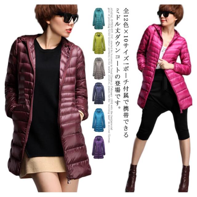 全12色×10サイズ!超軽量ダウンコート 軽量 ダウンコート ライトダウン 薄型 軽量 ミドル丈 フード付きダウンコート キルティング ライト ダウン コート アウター 大きサイズ 無地 防寒 冬 秋冬 レディース