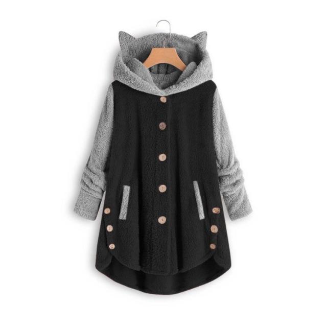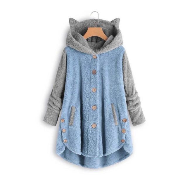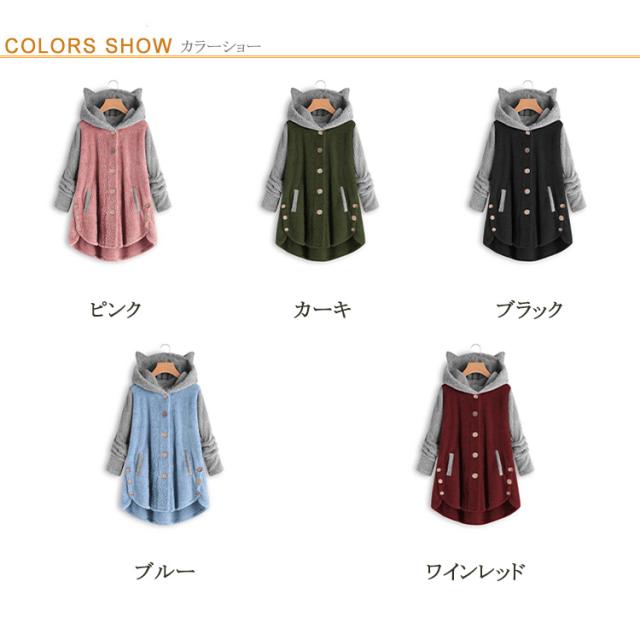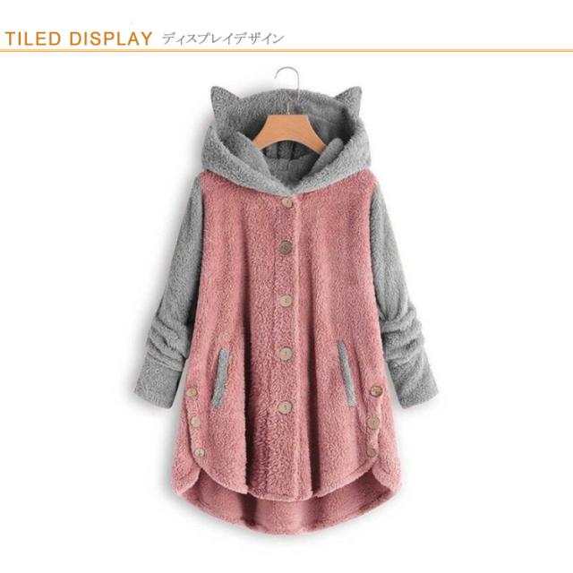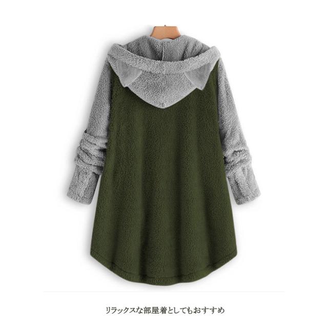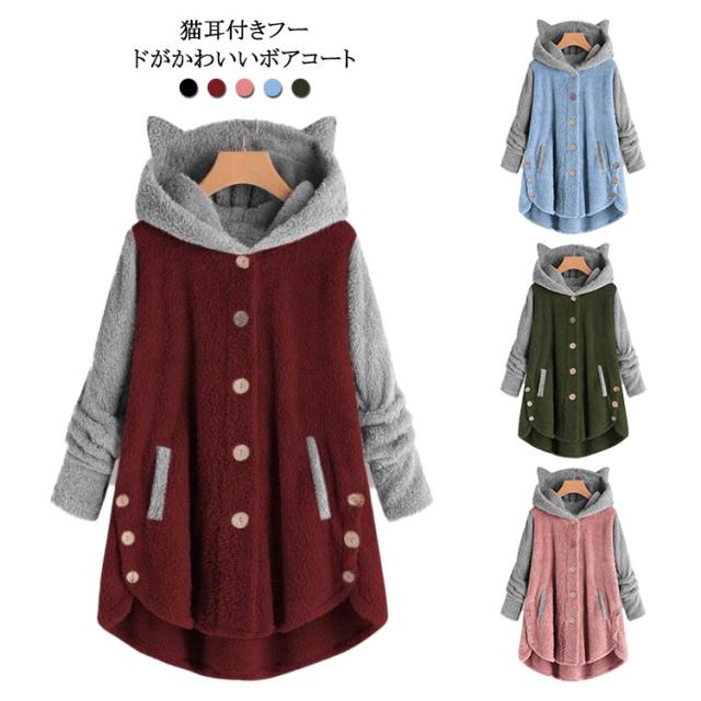 コート レディース 猫耳 フード付き ボアコート ミドル丈 ジャケット アウター 長袖 裏起毛 羽織り フード付き ナイトアウター 秋冬 暖かい ふわふわ もこもこ ルームウェア 防寒着 部屋着 大きいサイズ 切り替え サイドボタン
