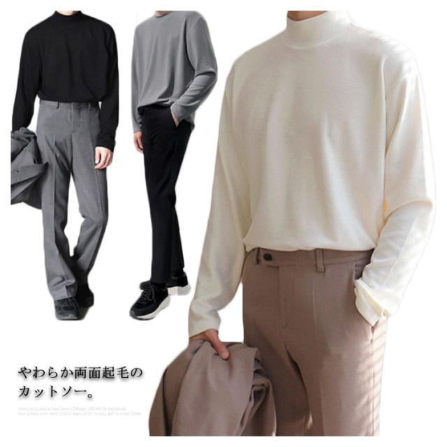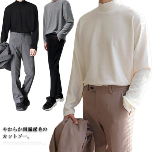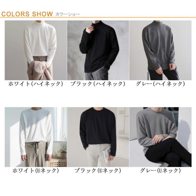 カットソー 長袖 メンズ Tシャツ Uネック ハイネック トップス tシャツ ロングTシャツ ロンT 厚手 起毛 暖かい ぬくぬく 秋 冬 インナー 肌着 プルオーバー やわらか ゆったり 着心地抜群 無地 シンプル 定番 カジュアル ストリート モード