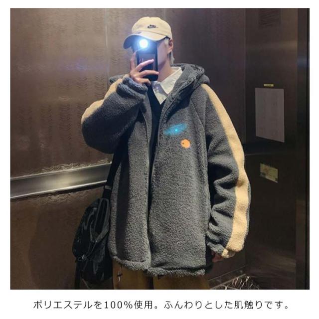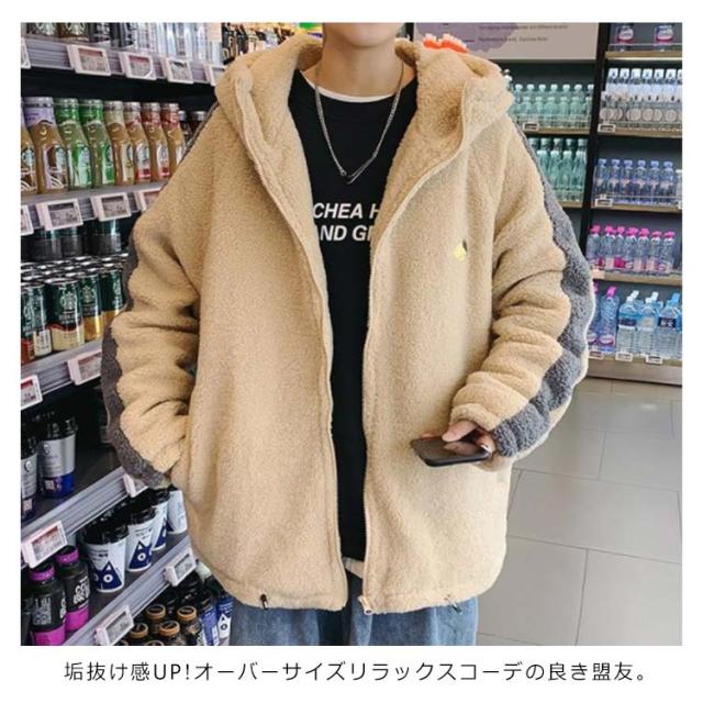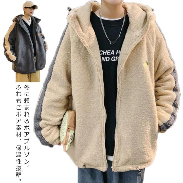 ボア ジャケット メンズ ボア ブルゾン メンズ ボア パーカー メンズ ボアパーカー ボア ブルゾン 韓国 ボア ジャケット オーバーサイズ ジップパーカー フリース ジャケット もこもこ アウター メンズ 冬 韓国 ファッション