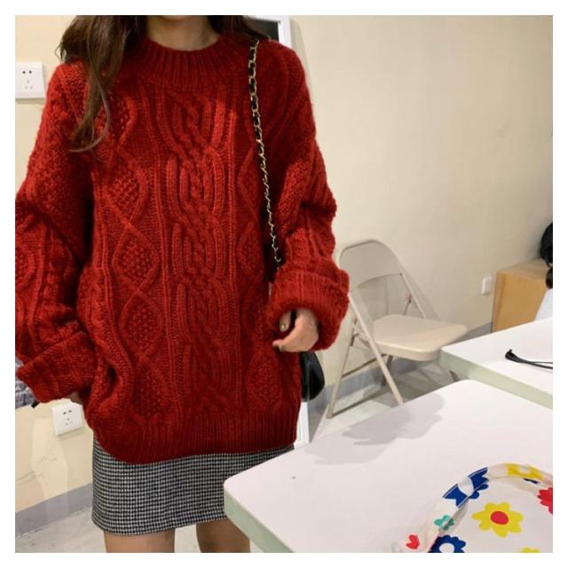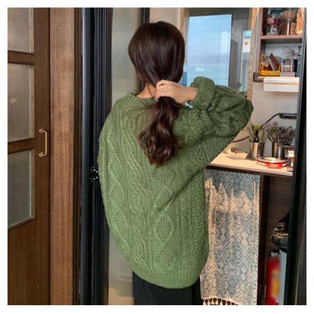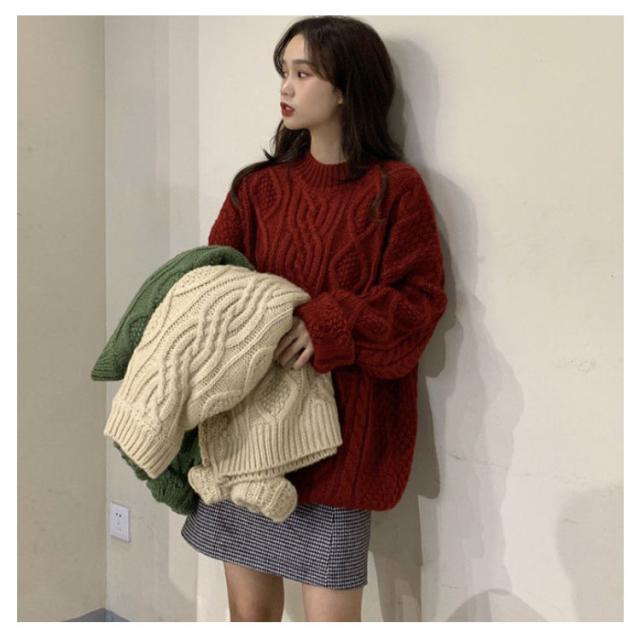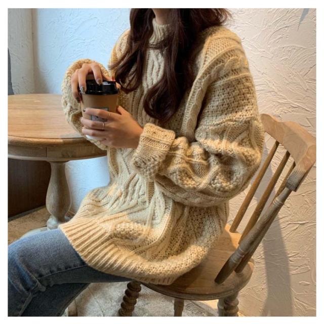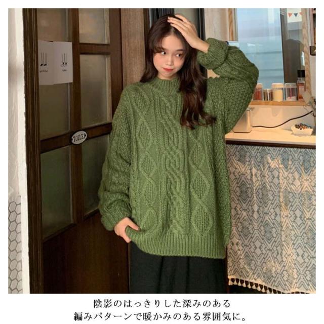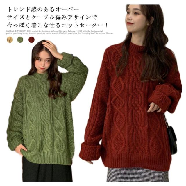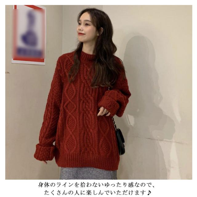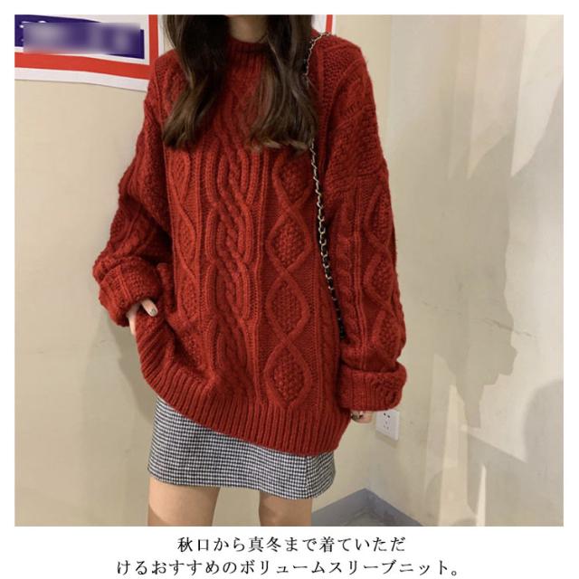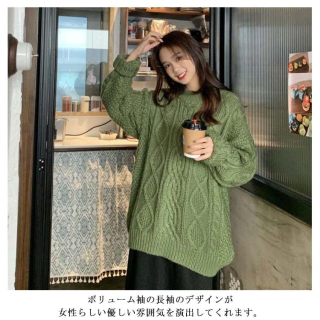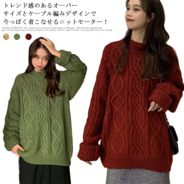 【送料無料】セーター レディース ニット ロング 長袖 無地 ゆったり 春秋冬 ケーブル編み トップス 韓国 クルーネック 丸ネック オーバーサイズ ビッグシルエット プルオーバー S/M/L/LL おしゃれ きれいめ