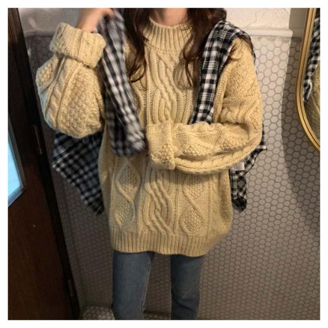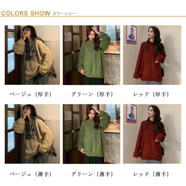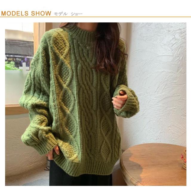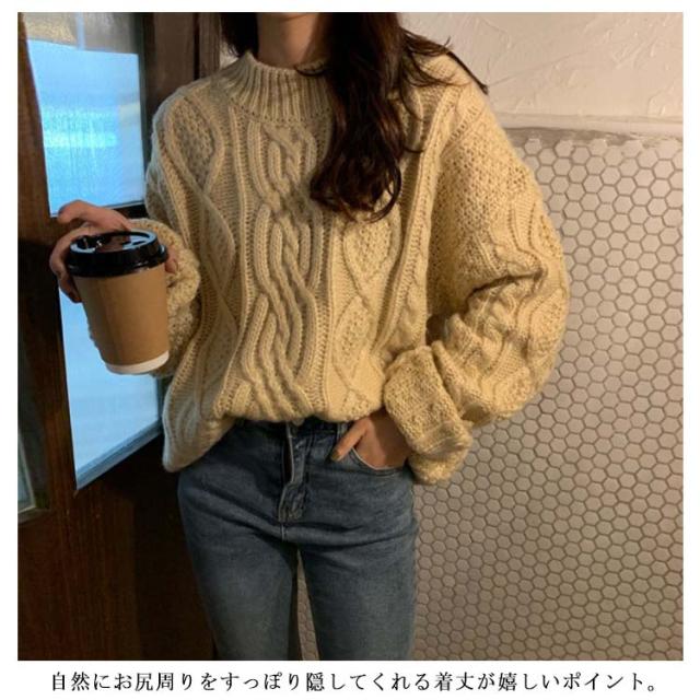 | トレンド感のあるオーバーサイズとケーブル編みデザインで今っぽく着こなせるニットセーター! 陰影のはっきりした深みのある編みパターンで暖かみのある雰囲気に。 ボリューム袖の長袖のデザインが女性らしい優しい雰囲気を演出してくれます。 自然にお尻周りをすっぽり隠してくれる着丈が嬉しいポイント。 身体のラインを拾わないゆったり感なので、たくさんの人に楽しんでいただけます♪ 秋口から真冬まで着ていただけるおすすめのボリュームスリーブニット。 | |