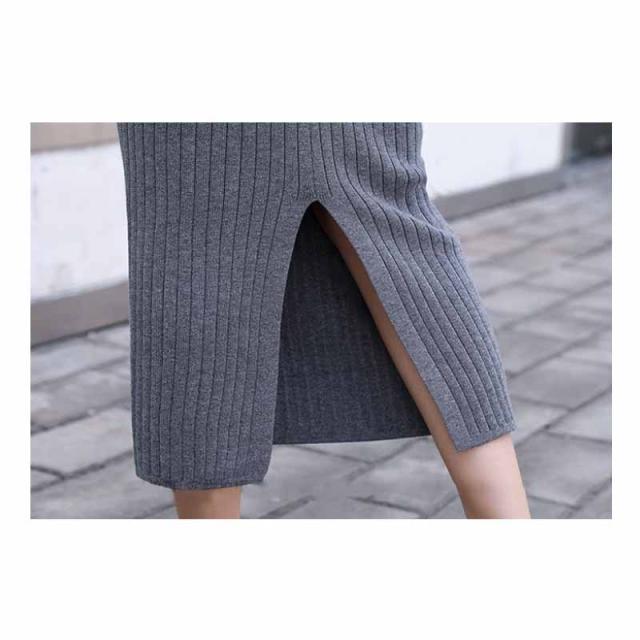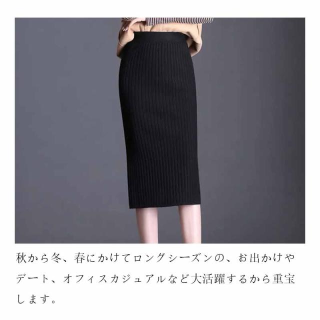 送料無料 タイトスカート ロング スリット レディース ニットスカート スカート 冬 バックスリット リブニット タイトスカートプリーツ スカート 動けるストレッチ リブニットスカート おしゃれ 黒 ブラック グレー ハイウエスト 秋冬 新作 秋 春 冬