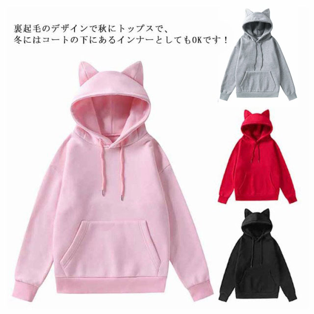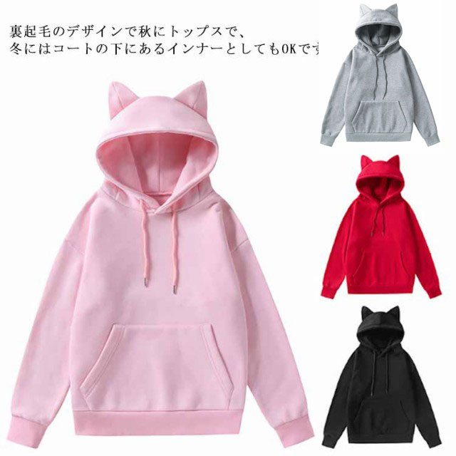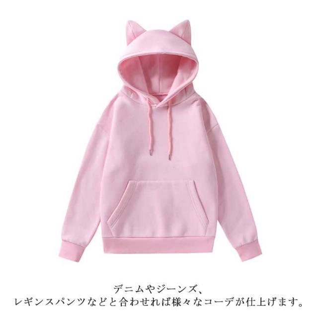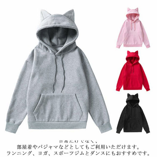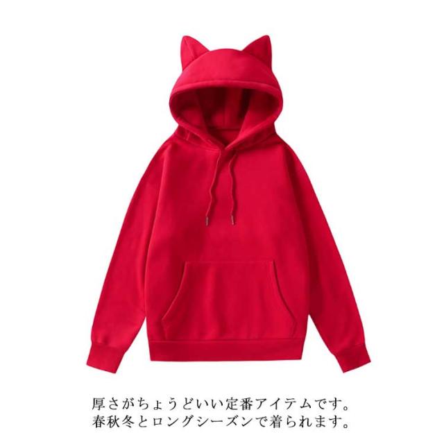 猫耳パーカー パーカー レディース メンズ 春 秋冬 無地パーカー プルオーバー フード付き 裏起毛パーカー 大きいサイズ カップルパーカー ペアルック トップス ゆったり カジュアル かわいい おしゃれ 送料無料