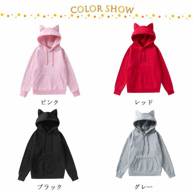 | ファッションとデザインをブランドターゲットとして、様々なシーンに応用します。時代の変化に適応する美しさで自信を咲かせます。 シンプルで、ミックスコーデでも気軽。春秋冬とロングシーズンで使いまわせます。ノンストレスな生地で通気性が良いのです。 日常だけでなく、部屋着やパジャマなどとしてもご利用いただけます。ランニング、ヨガ、スポーツジムとダンスにもおすすめです。デニムやジーンズ、レギンスパンツなどと合わせれば様々なコーデが仕上げます。 シンプルなフード付きパーカーは若く見えます。年齢問わず着ていただけます。厚さがちょうどいい定番アイテムです。春秋冬とロングシーズンで着られます。裏起毛のデザインで秋にトップスで、冬にはコートの下にあるインナーとしてもOKです! フードの猫耳形状デザインで、シンプルな純色にカラーを添いました。シンプルを豊富化に見せてくれます。快適で着て、おしゃれでファッションです。秋から春まで長期利用の定番アイテムです。 | |