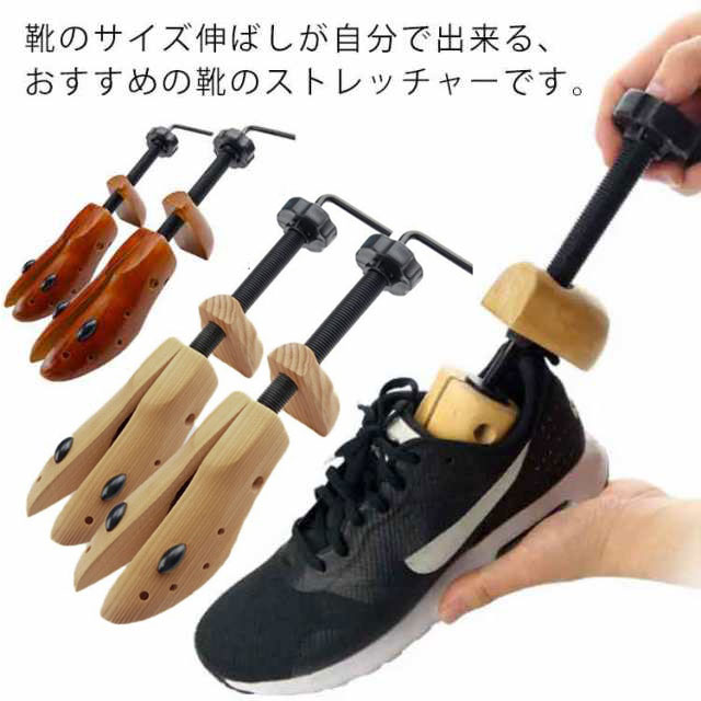 | 靴のサイズ伸ばしが自分で出来る、おすすめの靴のストレッチャーです。 これがあれば、靴の幅を広げる事も、小さい靴のサイズを伸ばす事も可能!! さらに、外反母趾や内反少趾など、あたって痛い箇所を部分調節まで出来ちゃいます。 使い方は、簡単!! 靴の中にセットしてハンドルやねじを回すダケでお手持ちの靴がぴったりサイズに!! | |