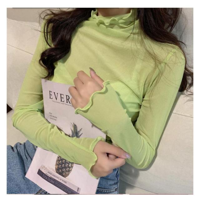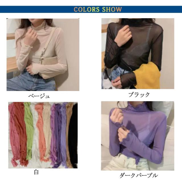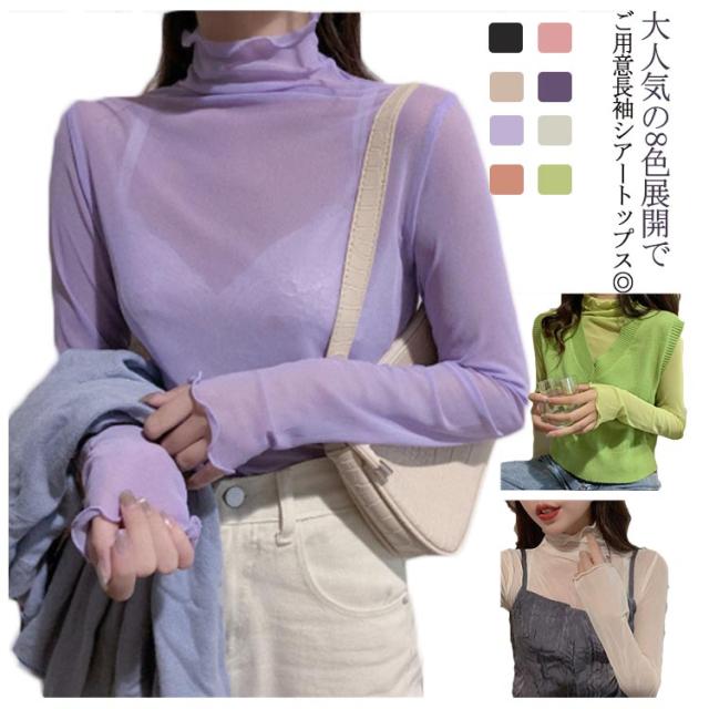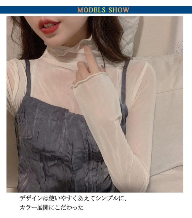 【送料無料】 シアートップス 透け感 シースルーブラウス シアートップス チュールトップス レディース レース ハイネック 透け感 インナー トップス長袖 tシャツ フリル袖 レイヤード 重ね着 きれいめ おしゃれ かわいい UV対策 紫外線対策 冷房対策 薄手