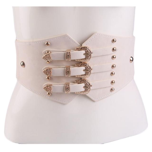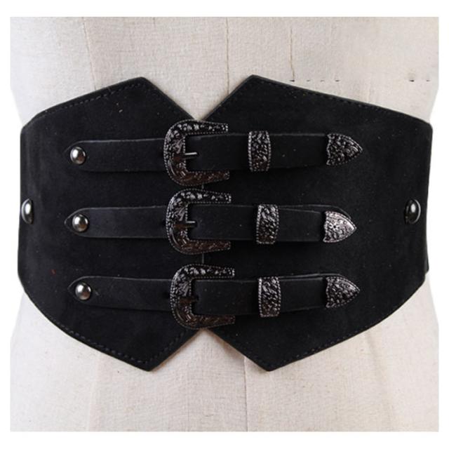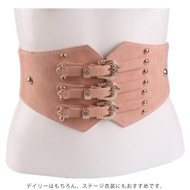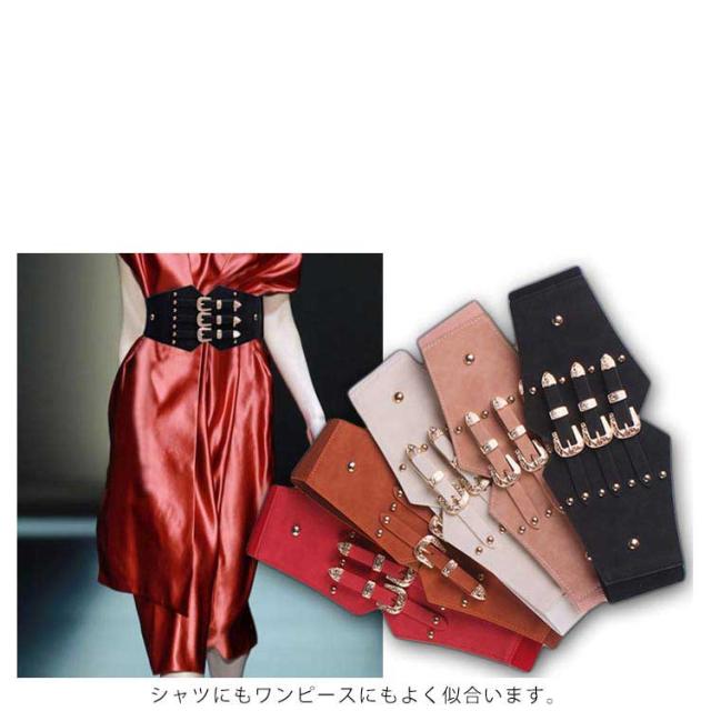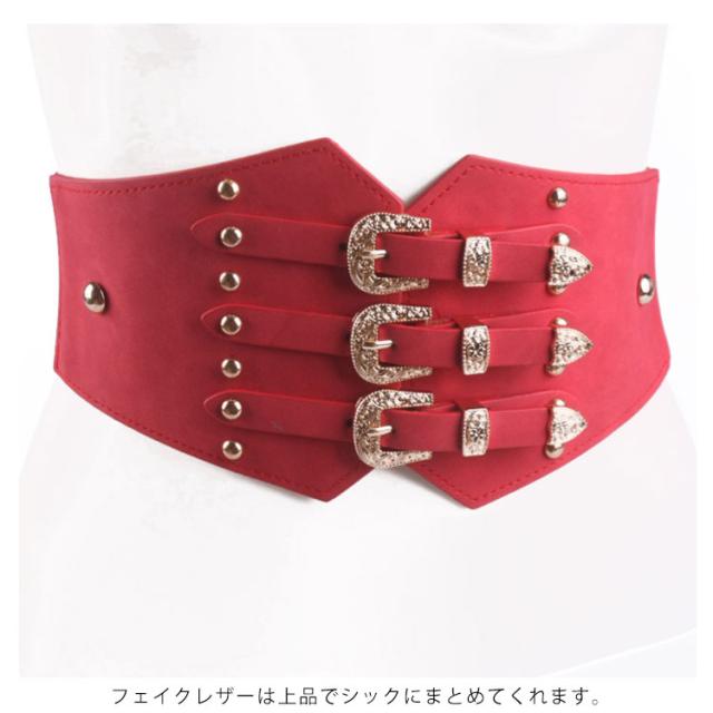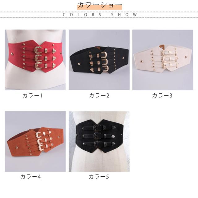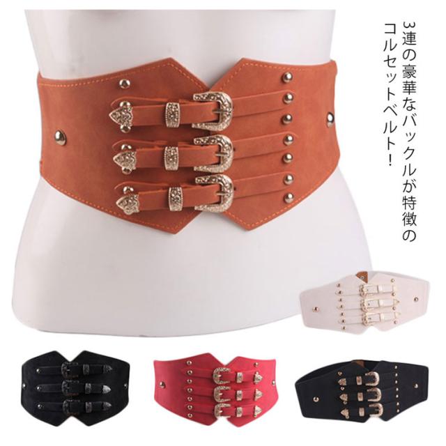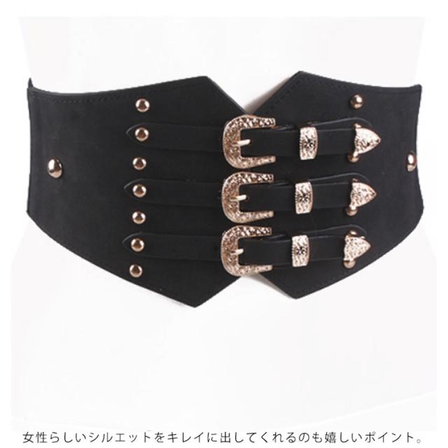 3バックル コルセット 飾りベルト スタッズ レディース サッシュベルト コルセットベルト ゴムベルト 太ベルト 大きいサイズ スエード調 パーティー カマーバンド ダンス 送料無料