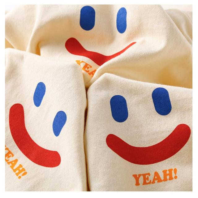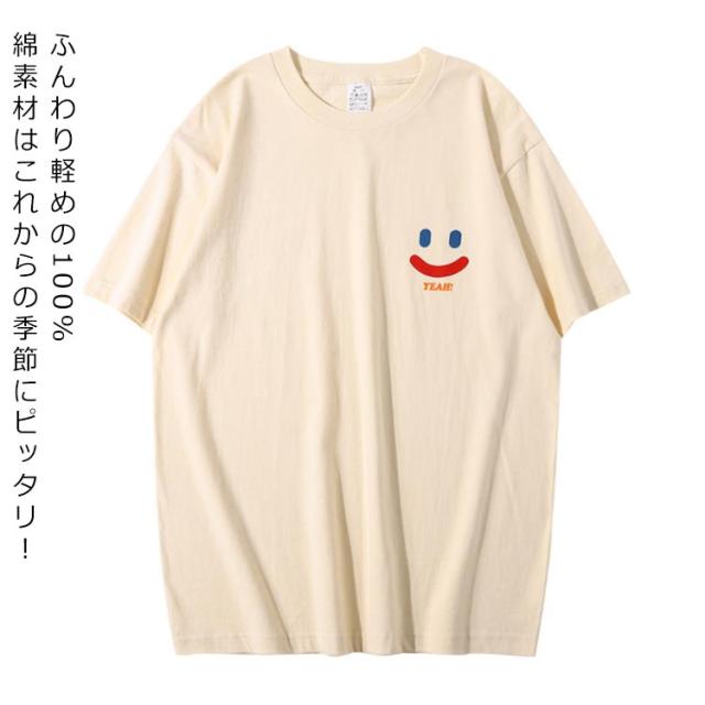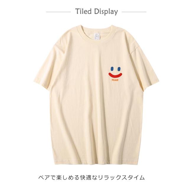 送料無料 カップル ペアtシャツ 半袖 スマイル ペアルック お揃い 服 春 夏 ビックシルエット tシャツ 韓国ファッション デート おでかけコーデ おそろ オルチャンファッション 韓国服 リンクコーデ