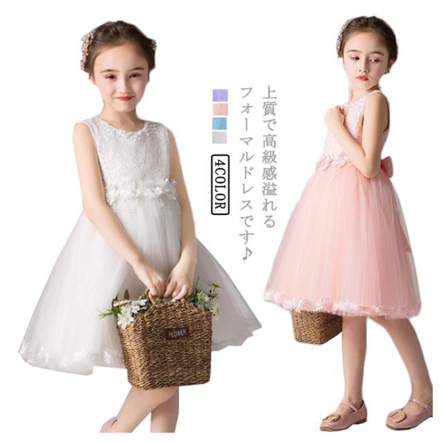 110-160CM展開 子供ドレス フォーマルドレス パーティードレス キッズ用 ワンピース ジュニア ノースリーブ 膝丈 チュール 後ろリボン 結婚式 女の子 小学生 中学生 発表会 演奏会 七五三