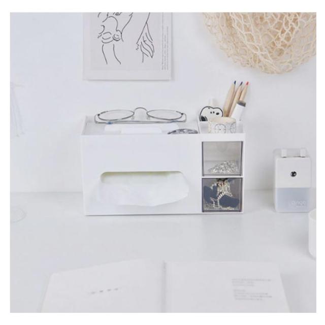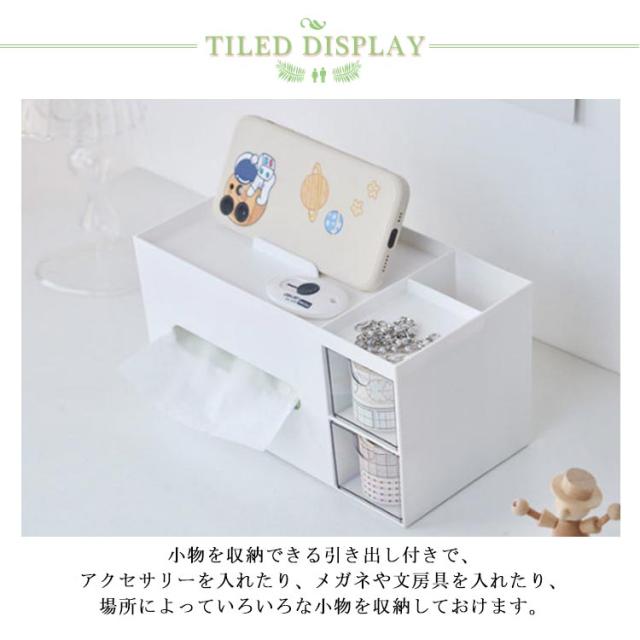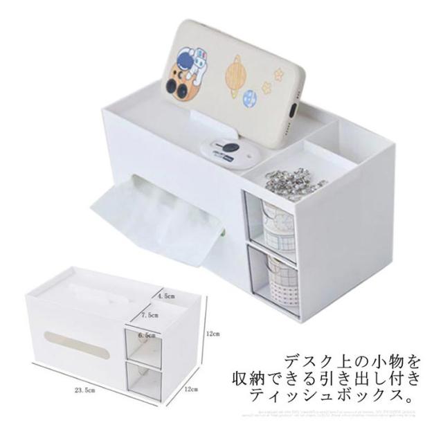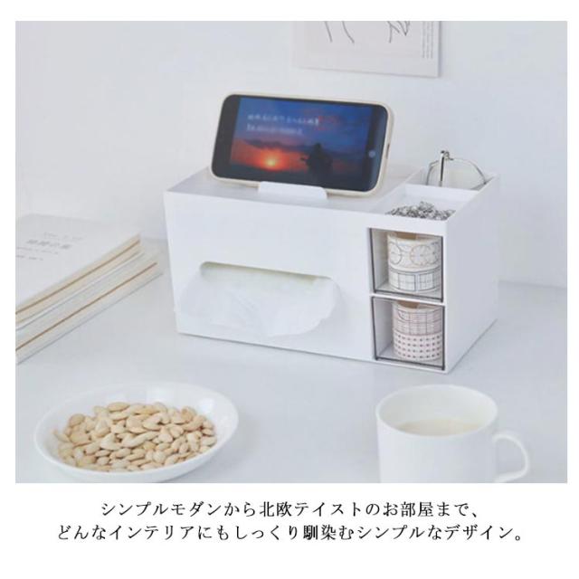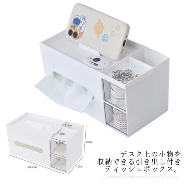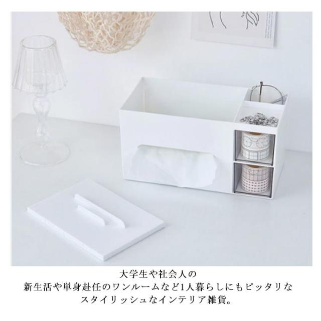 ティッシュボックス 引き出し付き 小物収納 ティッシュケース おしゃれ 北欧 文房具 オフィス 事務所 リモコン収納 ペン立て 化粧ブラシ立て ホワイト 白 モノトーン インテリア 雑貨 デスク収納 省スペース