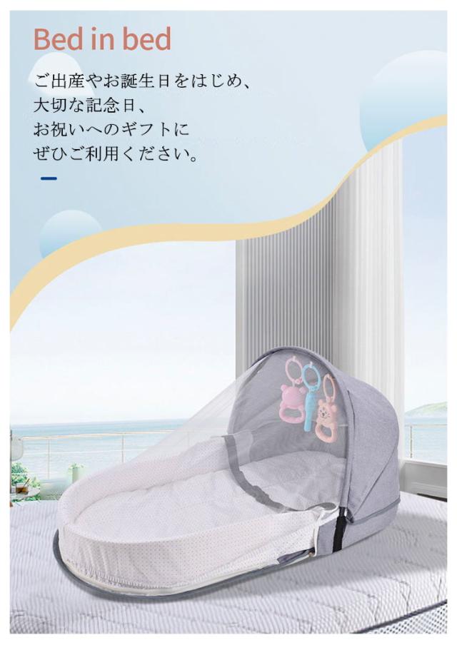 ベビーインベッド 揺りかご 添い寝 持ち運びに便利 蚊帳付き ベビーベッド 折りたたみ 折りたたみベッド 携帯型 転落防止 オムツ交換 女の子 男の子 ベッドインベッド 新生児用寝具 出産祝い プレゼント 新生児