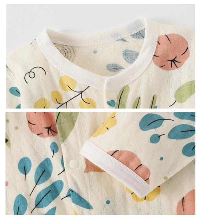 | 1年中着用できる綿素材ベビーロンパース 吸収性・速乾性に優れた綿素材、柔らかな風合いとさらりとした肌触りで赤ちゃんもうれしい♪ 程よい長さは夏の冷房対策にも!長いシーズンにご愛用いただけます。 スナップ式ボタンで毎日のおむつ替え・着替えが楽ちん。 シンプルながらも可愛いイラストを設計して、ユニセックスで着られるアイテムに仕上げました。 | |