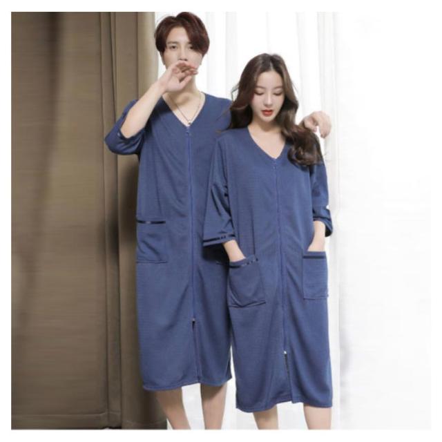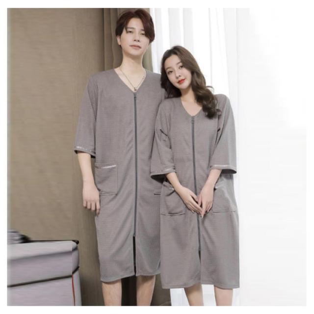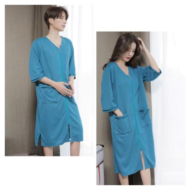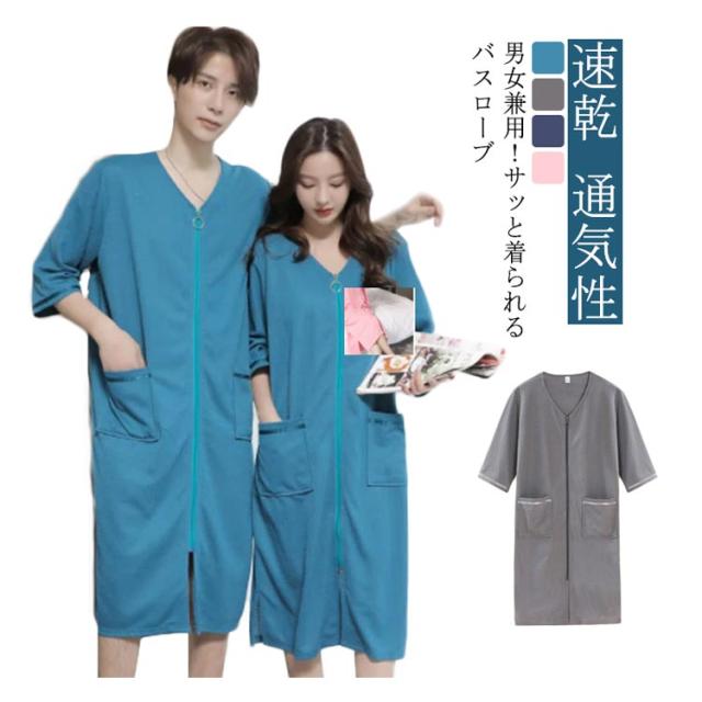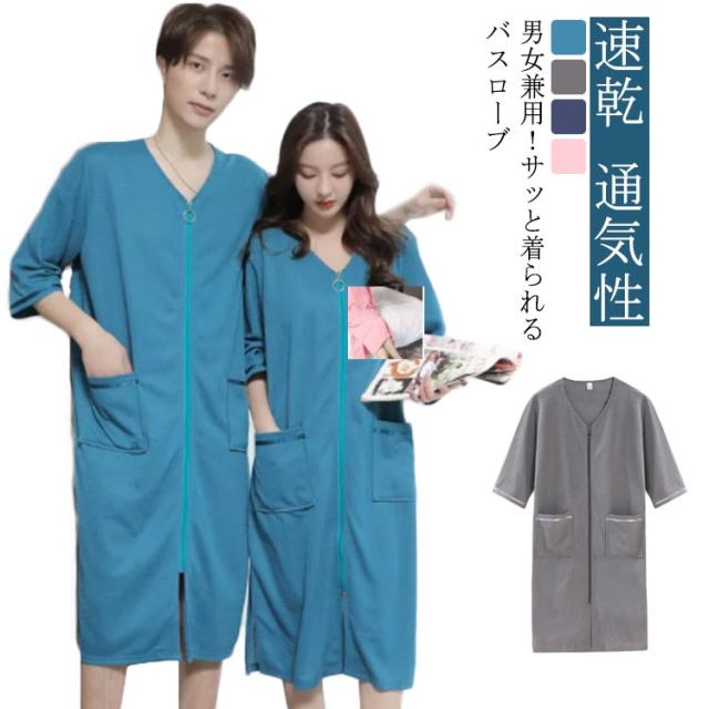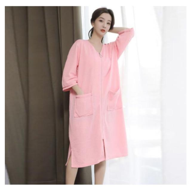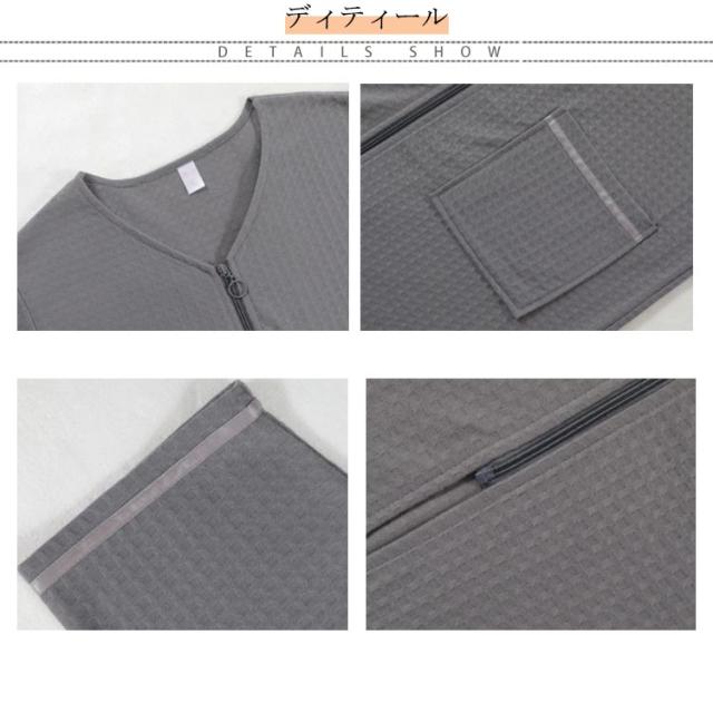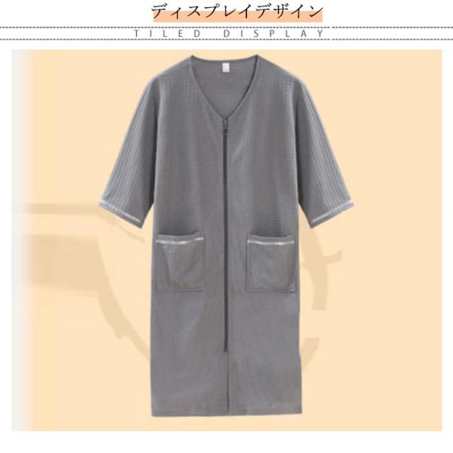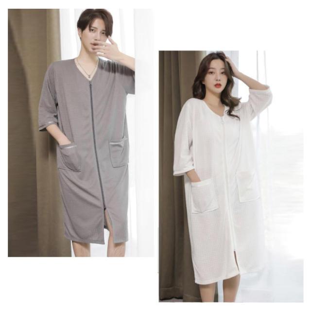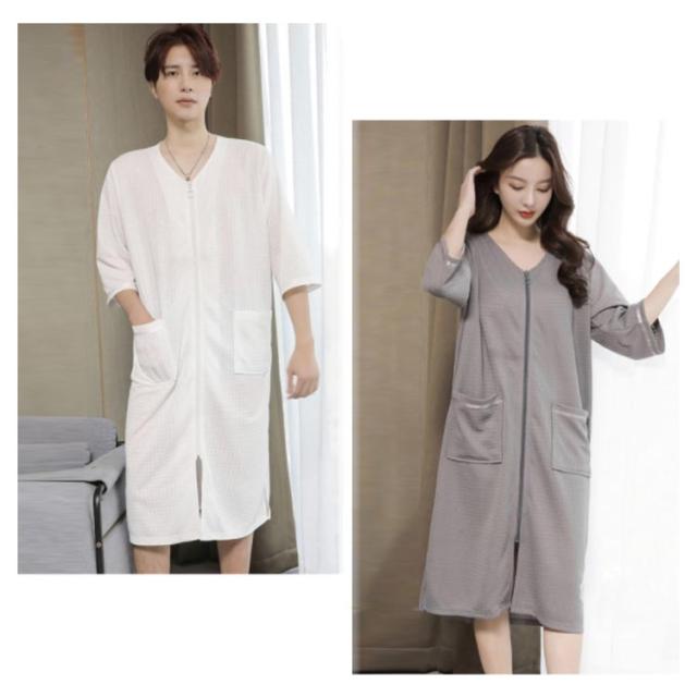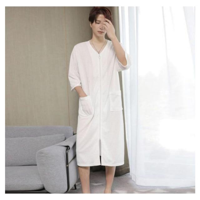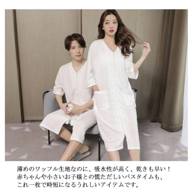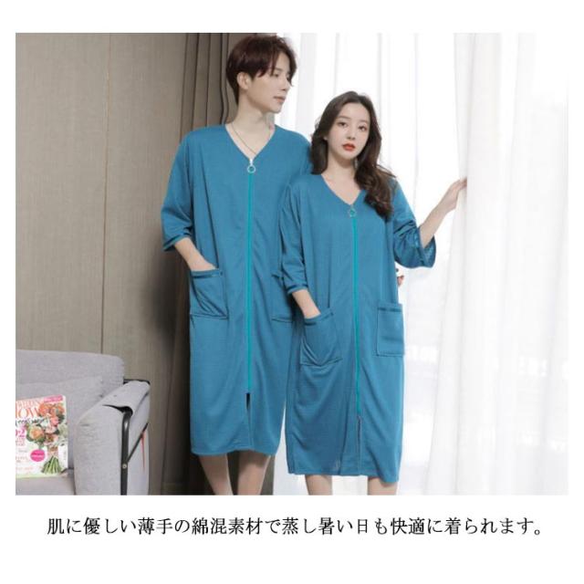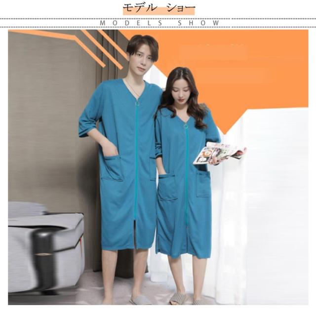 バスローブ レディース メンズ ワッフル生地 前開き ファスナー ロング丈 膝丈 春 夏 薄手 バスローブ ガウン 七分袖 お風呂上り 吸汗 速乾 通気性 部屋着 ルームウェア パジャマ 夏用 軽量 快適 ゆったり 無地 風呂 温泉 ホテル 自宅 ギフト 贈り物 プレゼント 男女兼用