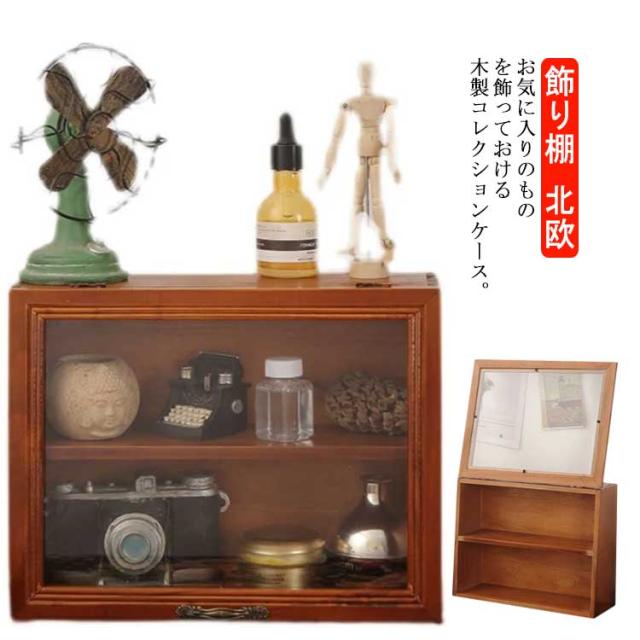 コレクションケース 木製 コレクション 棚 2段 ディスプレイケース ディスプレイ 棚 コレクションボード ショーケース キュリオケース 収納棚 フィギュアケース 扉付き レトロ 収納家具 収納ケース コレクションボックス 木製 飾り棚 ナチュラル シンプル 北欧