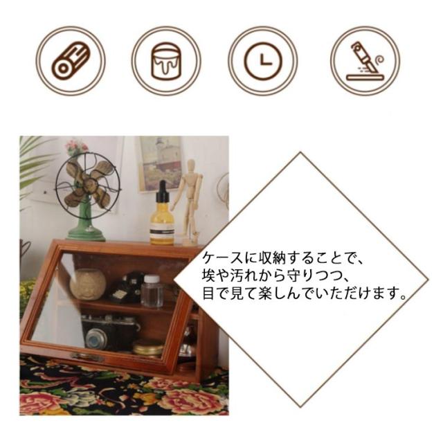 | お気に入りのものを飾っておける木製コレクションケース。 透明感のある扉が、コレクションの魅力を最大限に引き立てます。 ケースに収納することで、埃や汚れから守りつつ、目で見て楽しんでいただけます。 メタルの質感がレトロ感のあるスタイリッシュな取っ手です。 レトロな雰囲気漂う木目が上品な雰囲気を演出します。ちょうどよいサイズ感はリビングだけでなく、書斎、珈琲店など様々な空間に取り入れることができます | |