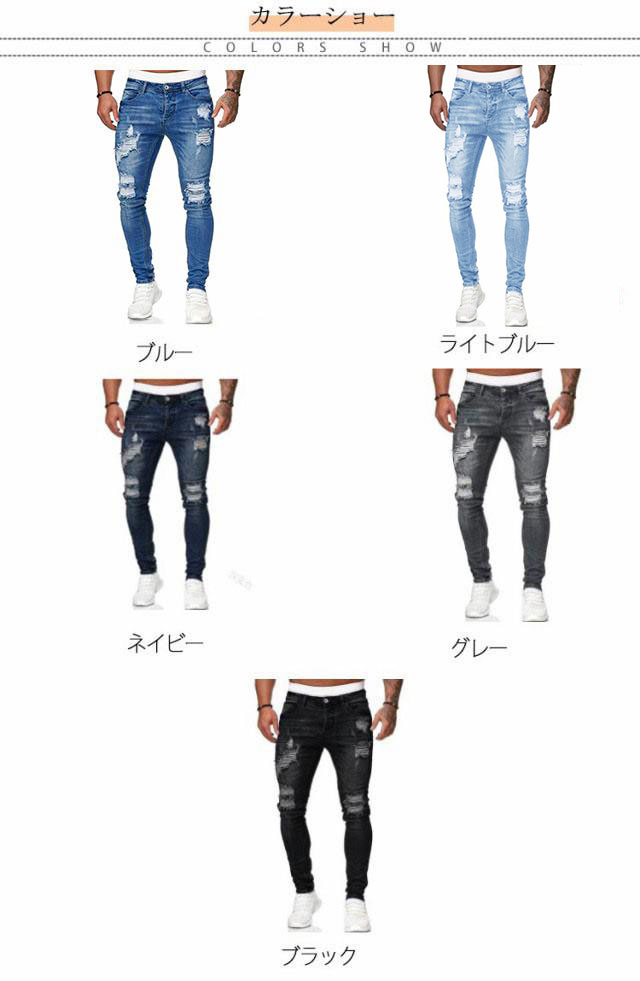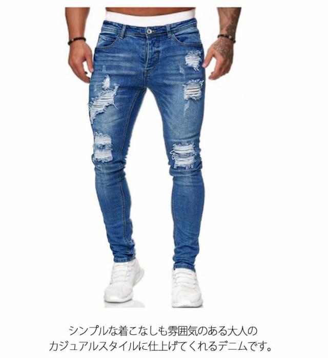 ダメージジーンズ メンズ スキニーパンツ デニムパンツ ダメージ加工 スキニー ジーンズ ストレッチ ダメージデニム ボトムス ロング パンツ スリム 細身 スキニー デニムパンツ ジーパン お兄系 ストリート系 B系 カジュアル おしゃれ かっこいい 春夏 秋服 秋 送料無料