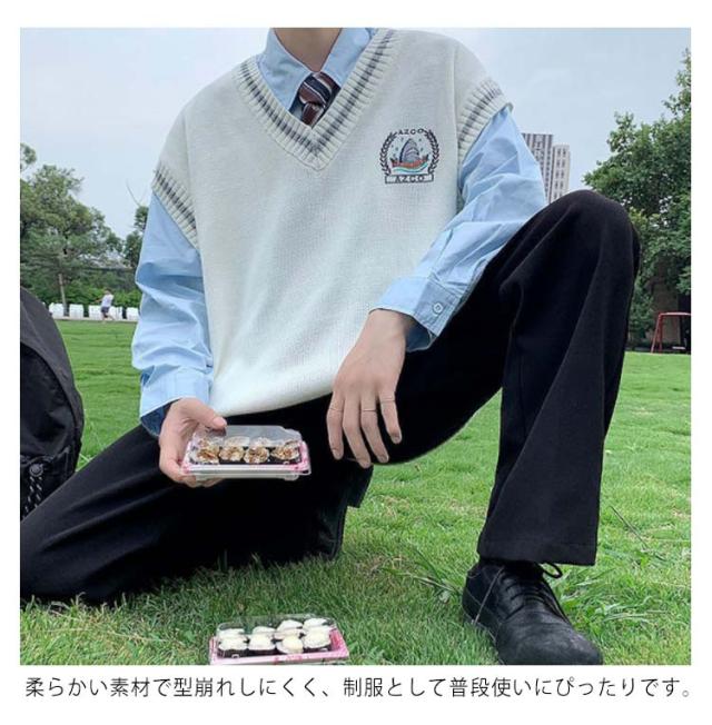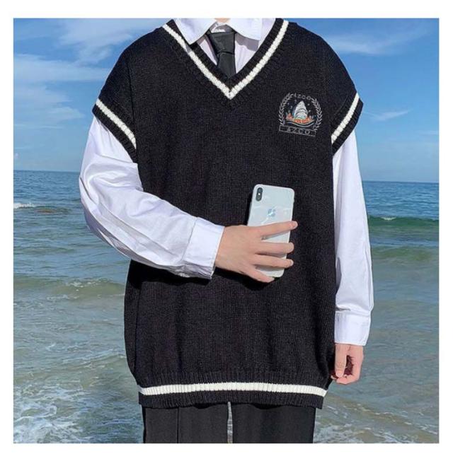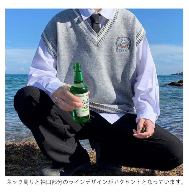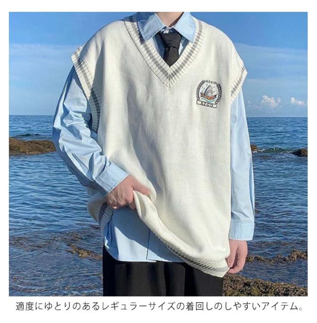 ニットベスト メンズ Vネック 学院風 配色ライン チョッキ スクールベスト 男子 学生服 制服 中学生 高校生 スクールセーター ノースリーブ 通学 ゆったり カジュアル 春秋冬 コスプレ ストリート系 送料無料