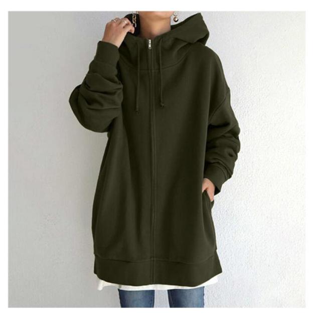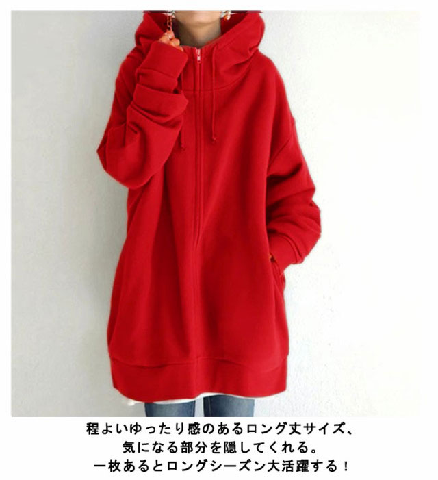 パーカー レディース 長袖 スウェット ロング丈 パーカー ボリュームネック ハイネック フード付き ジップアップパーカー 無地 裏起毛 ロングカーディガン ロングパーカー トップス 体型カバー 着痩せ あったか おしゃれ ゆったり 大きいサイズ 防寒 秋冬 春