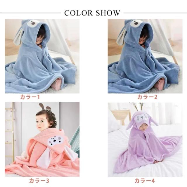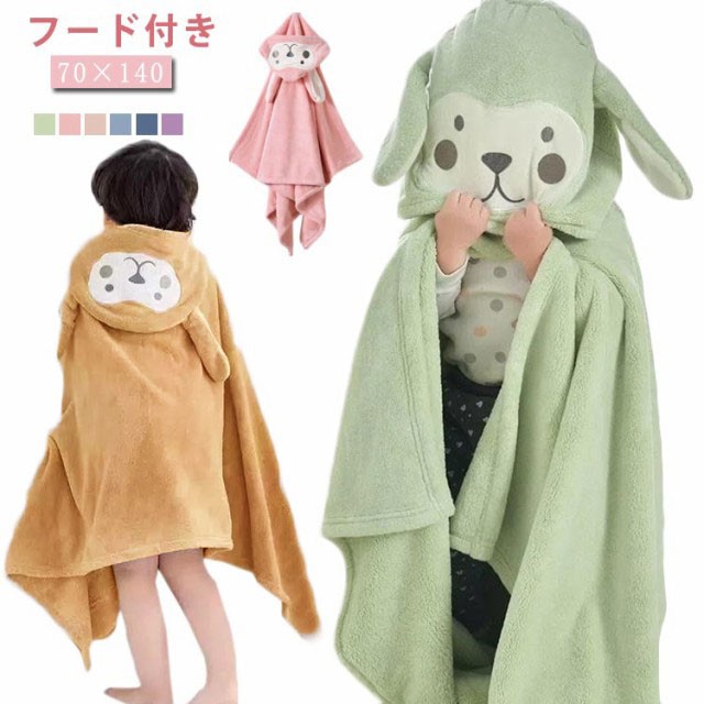 フード付き バスタオル マイクロファイバー 70×140 赤ちゃん 耳付き キッズ バスローブ ルームウェア マント ベビー ポンチョ バスローブ 柔らか ふわふわ バス タオル こども用 バスローブ バスポンチョ プール 海 川 お風呂 大判