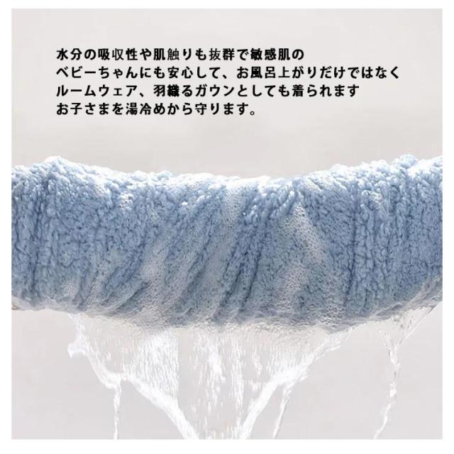 | 子供用吸水性に優れたフード付きバスタオル、赤ちゃんと子供のいるご家庭ではバスローブはお風呂上がりにとっても役立つ便利なグッズ! 男の子女の子問わずに使える!色も豊富にあるので、性別や好みに応じて色を選んでください。 ふわふわのマシュマロのような肌触りは、とても着心地よく人気なバスローブ! 水分の吸収性や肌触りも抜群で敏感肌のベビーちゃんにも安心して、お風呂上がりだけではなくルームウェア、羽織るガウンとしても着られます お子さまを湯冷めから守ります。 バスローブを羽織るだけでOKなので、忙しいお風呂上がりに大活躍のアイテムです。 吸水性抜群のマイクロファイバー生地を採用した身体はもちろん、フード付きなので髪の毛の水分もしっかりとキャッチします。 肌触りがよく、お子さまにもやさしい素材です。 | |