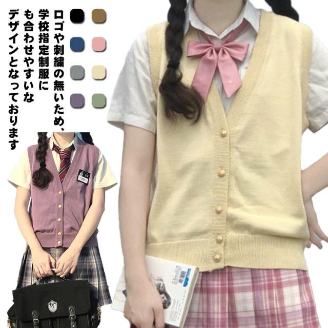 スクールベスト 前開き 全8色 女子 ノースリーブ 無地 ゆったり Vネック ニット ベスト 高校 学生制服 スクールセーター 学校 女子校生 女の子 通学 中学生 高校生 スクールニット レディース 無地 春 秋冬 送料無料