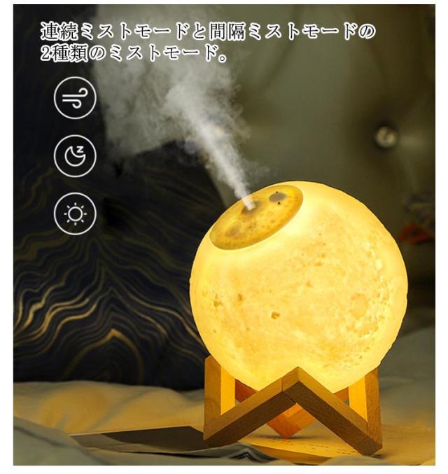 コードレス 卓上加湿器 超音波 ミニ 小型 充電式 アロマディフューザー ムーン LEDライト 間接照明 月のライト 自動オフ機能 寝室 ナイトライト インテリア 乾燥対策 可愛い 静音