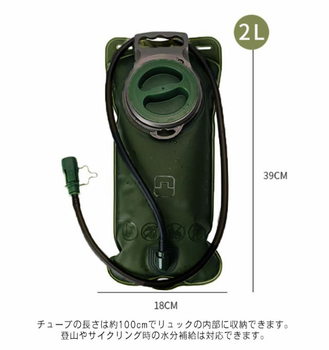 水分補給袋 ハイドレーション 2L 2リットル ボトル 柔らか ハイドレーションパック バイク バッグ ランニング サイクリング 登山 給水 チューブ ドリンク 漏れない 大容量 防災 アウトドア 送料無料