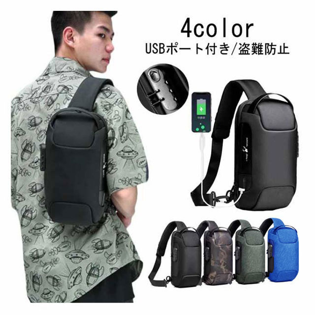 ボディーバッグ ショルダーバッグ メンズ バッグ ボディバッグ スポーティー ボディーバッグ 斜めがけ 肩掛け 防犯 USB 充電 携帯充電 撥水 おしゃれ 通勤 通学 アウトドア 海外旅行 海外 旅行 スリ 対策 バッグ 超軽量 ipad対応