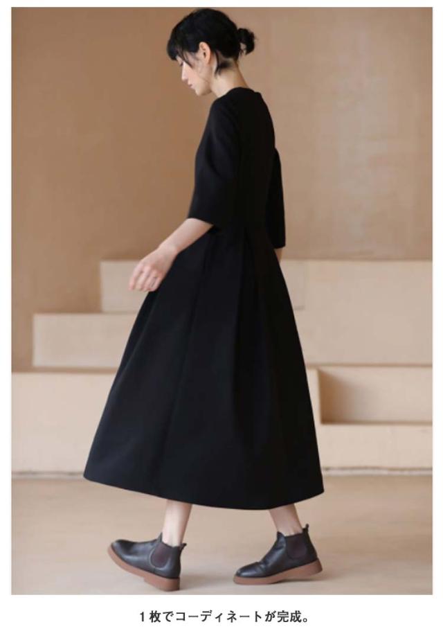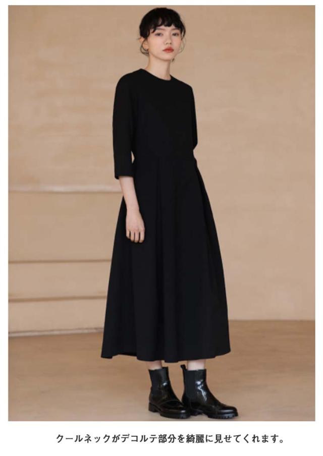 | 膝下丈の上品なワンピース。 クールネックがデコルテ部分を綺麗に見せてくれます。 ウエストのタックフレアのデザインが、上品なフレアシルエットに仕上げ、大人フェミニンな印象に。 1枚でコーディネートが完成。 普段使いはもちろん結婚式や卒入園式などのフォーマルシーンにもオススメの1枚。 | |