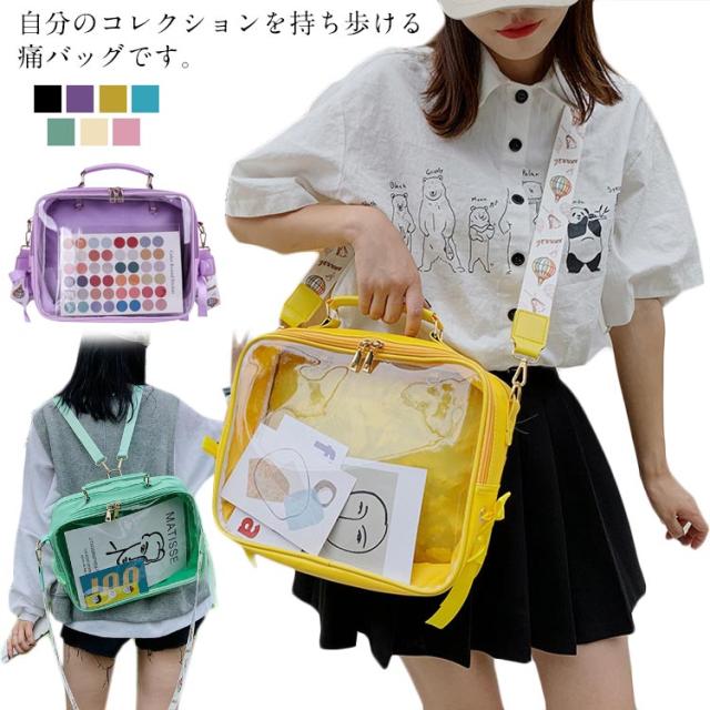 痛バッグ 推しバッグ ショルダーバッグ 3way 大容量 見せバッグ ハンドバッグ クリア リュック かばん スクールバッグ 通学 レディース 中学生 高校生 送料無料