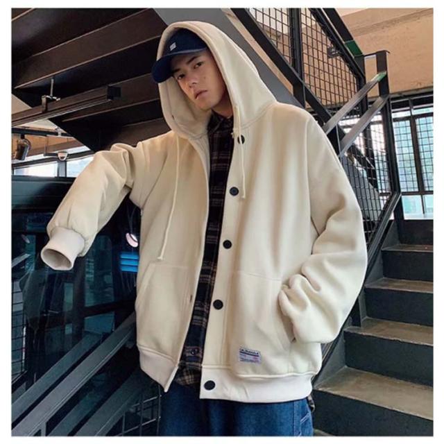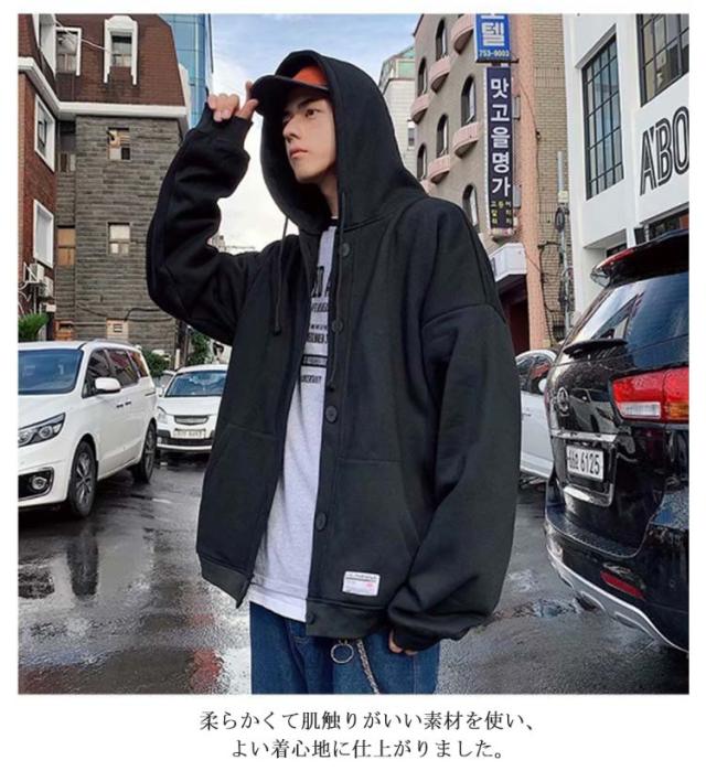 パーカー スタジャン ビッグシルエット ブルゾン メンズ ゆったり ジャンパー 前開き 大きいサイズ フード付き トップス ボタン カーディガン 春 秋 冬 カジュアル アウター ジャケット スウェット 無地 通学 送料無料